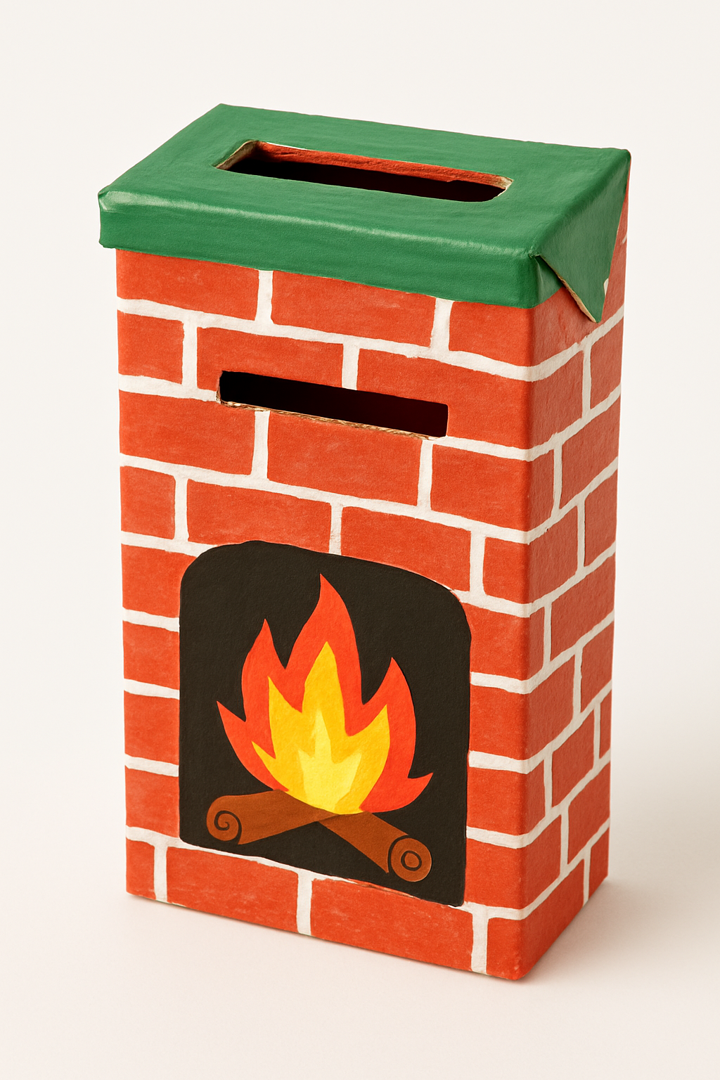 DIY: Corte a caixa para simular uma pequena lareira. Pinte de tijolo e adicione uma abertura no topo para inserir as cartinhas.